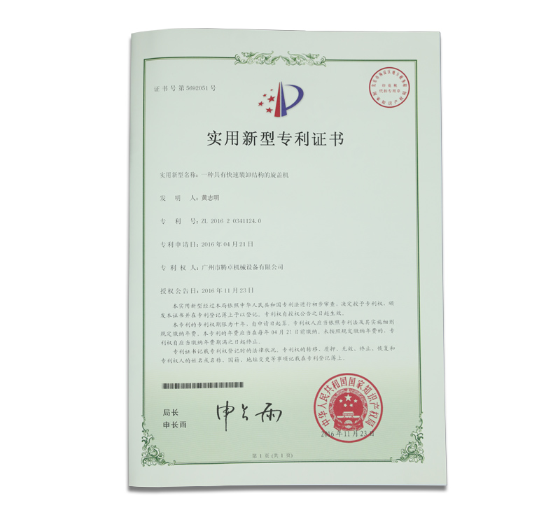 騰卓機械專利生產(chǎn)證書,專業(yè)制造包裝設(shè)備的生產(chǎn)廠家,全自動及半自動的洗瓶機,烘干機,灌裝機,旋蓋機,貼標機,套標機,打碼機等非標定制自動化包裝生產(chǎn)線