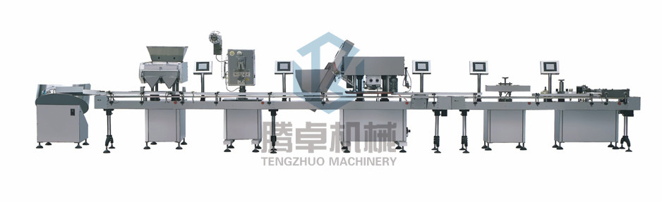 本線可對片劑(包括異形片)、硬膠囊、軟膠囊(各種形狀,透明、不透明)、丸劑進行計數分裝。可與理瓶機、塞紙機。塞干燥劑機、旋蓋機、電磁鋁箔封口機、不干膠貼標機組成全自動生產線。完全符合GMP認證要求,廣泛用于醫藥、食品、化工等行業。