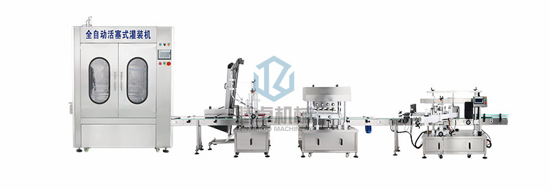 完成動作:人工放瓶-自動灌裝-機器放蓋-自動旋蓋–自動貼標-人工收瓶