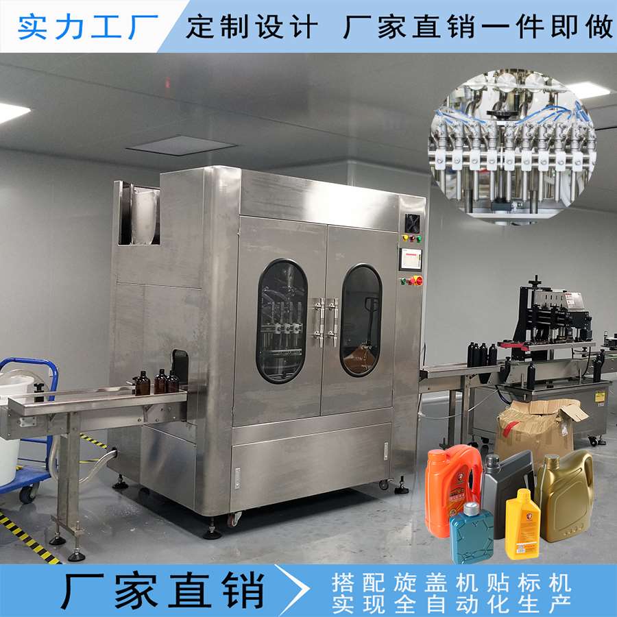 此生產線主要應用于日化廠,化工廠,汽車用品等行業。例如:洗衣液,洗潔精,洗發水,沐浴露,潤滑油,剎車油,汽油添加劑等,設備采用先進的光、電、氣一體化自動控制系統,實現進瓶,定位,灌裝,出瓶自動化生產。