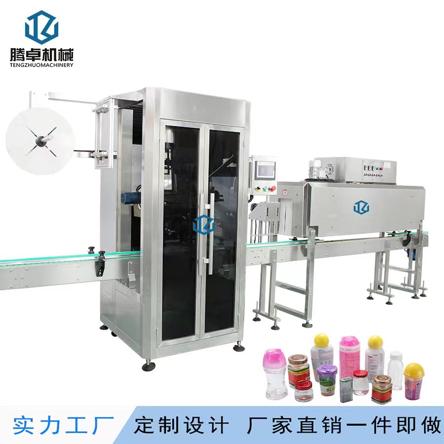 帶模具套標收縮機,該系列設備是集送瓶、分瓶、套標簽、收縮標簽功能于一體的全自動智能型包裝線、真正的高速、精確的定位、人力的精簡、完美的包裝是此設備設計的精神,適用于飲料及健康食品廠,具有美觀、易清潔保養的功能